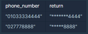 그리고 *를 phone_number의 뒷 4자리를 제외한 길이만큼 만들어줘야 하는데, 이때는 문자열 연산을 사용하면 된다.