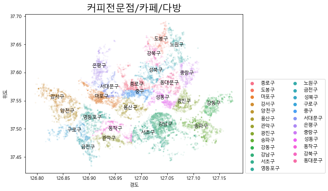 # 커피전문점/카페/다방인 데이터만 추출한 데이터프레임 생성