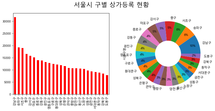 fig.suptitle('서울시 구별 상가등록 현황', size = 20)