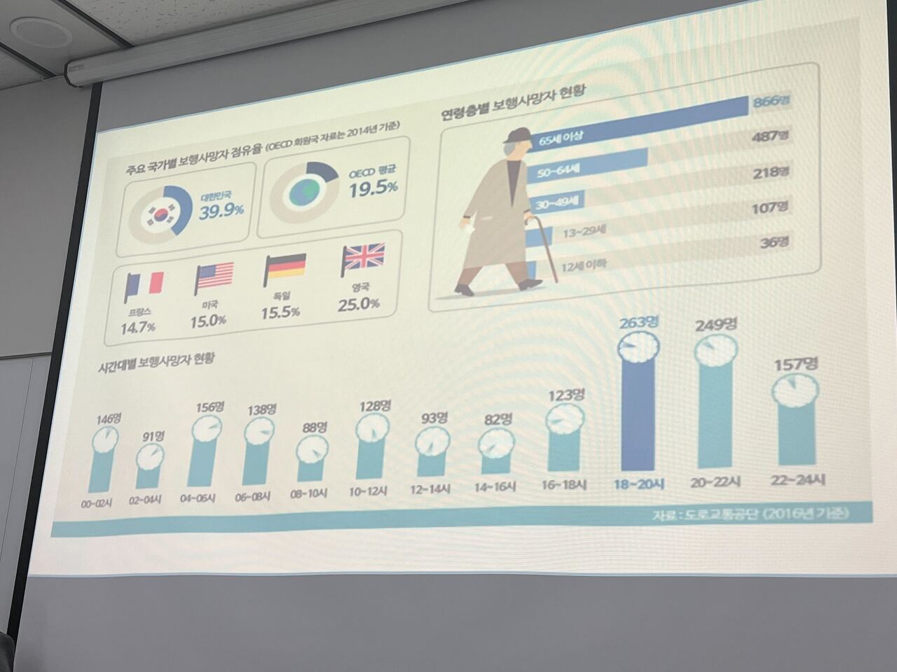 보행사망자가 우리나라가 특히 많고, 65세 이상이 많으며, 18시 이상에 많은 것이 왜 문제인가?