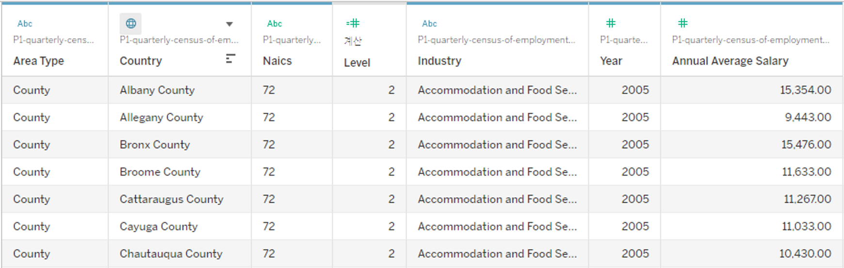 태블로에서 시각화 작업을 통해 뉴욕 주 내에 있는 산업들의 평균 급여를 분석해야 한다.