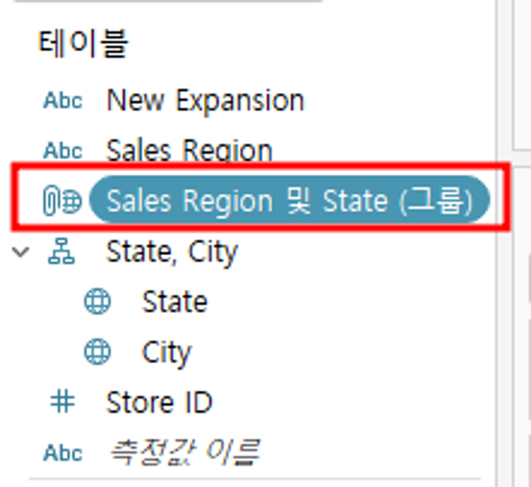 → Sales Region 필드 우클릭 > 지리적 역할 > 만들기 원본 > State 클릭