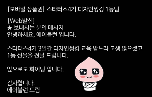 데이터 드리븐 디자인 씽킹 수업에서 진행한 조별 디자인 씽킹에서 우리 조가 1등을 했다!🎉🎉