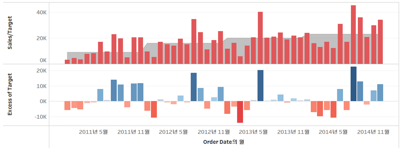 → 월 매출액 차트와 목표 매출액 차트가 합쳐진다.