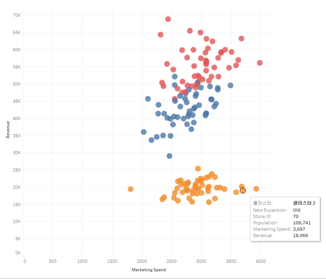 태블로에서는 k-means 클러스터링 알고리즘을 활용하여 군집화를 해준다.