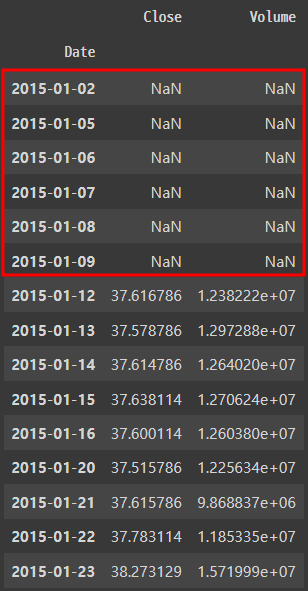 [out] DatetimeIndex(['2018-01-02', '2018-01-03'], dtype='datetime64[ns]', freq=None)