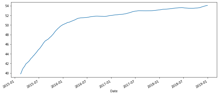 ▶ 이 값은 .ewm() 메소드에 넣는 adjust 매개변수의 값에 따라 결정된다.