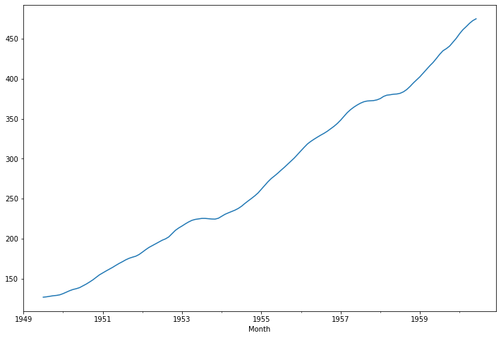 airline['EWMA12'] = airline['Thousands of Passengers'].ewm(span=12,adjust=False).mean()
