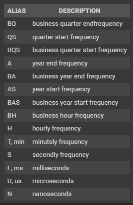 pandas는 빈도값을 제공하지 않기 때문에 수동으로 설정해줘야 한다.