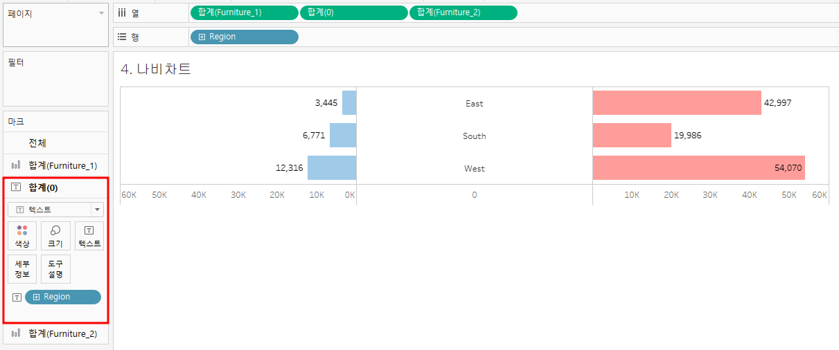 ① 측정 값을 '마크 > 텍스트'에 드래그&드랍