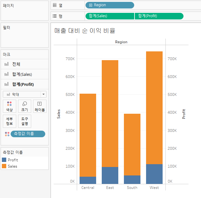 → 측정값 필드 우클릭 > 퀵 테이블 계산 > 비율 차이