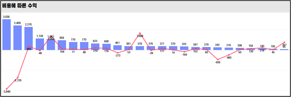 - 비용이 높은 상품을 확인하여 그 상품 또는 상품의 브랜드를 판매하지 않는 방향으로 고려