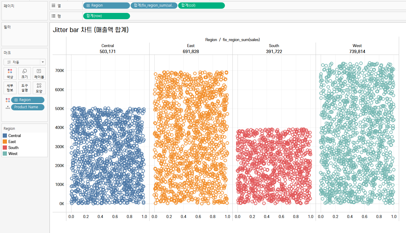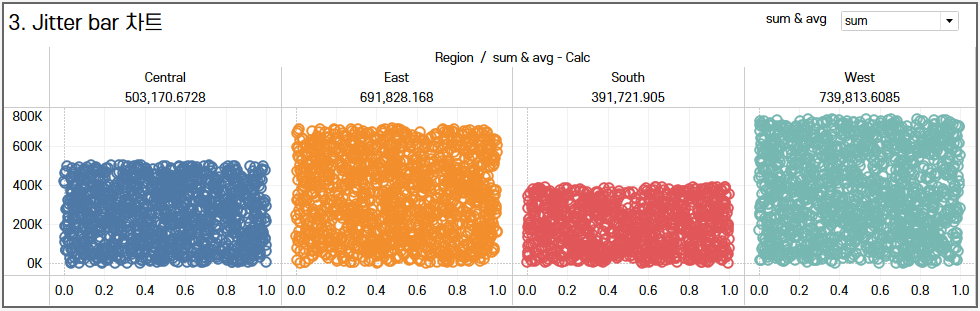 - 시트 3: Jitter bar chart - 매개변수 등록 sum/avg 변환