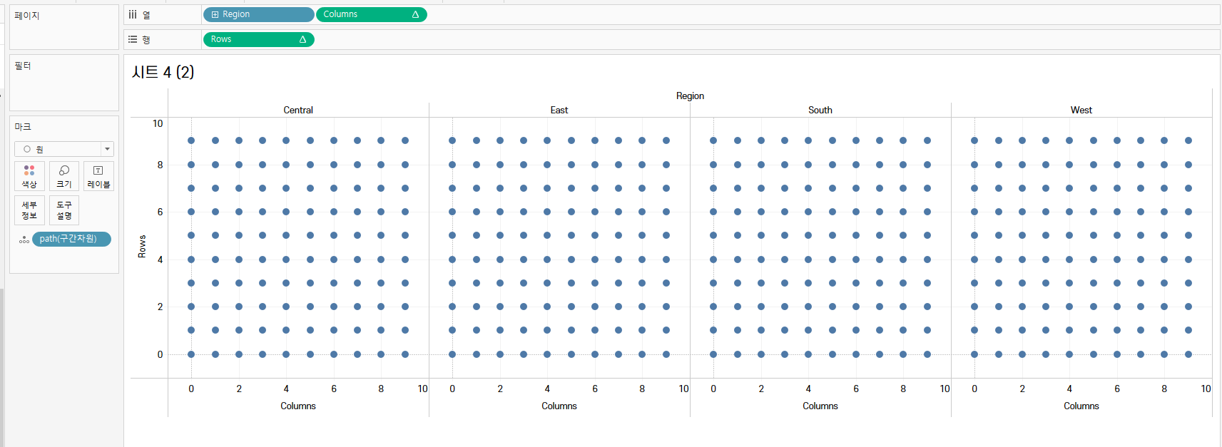 → Columns, Rows 우클릭 > 다음을 사용하여 계산 (path(구간차원))