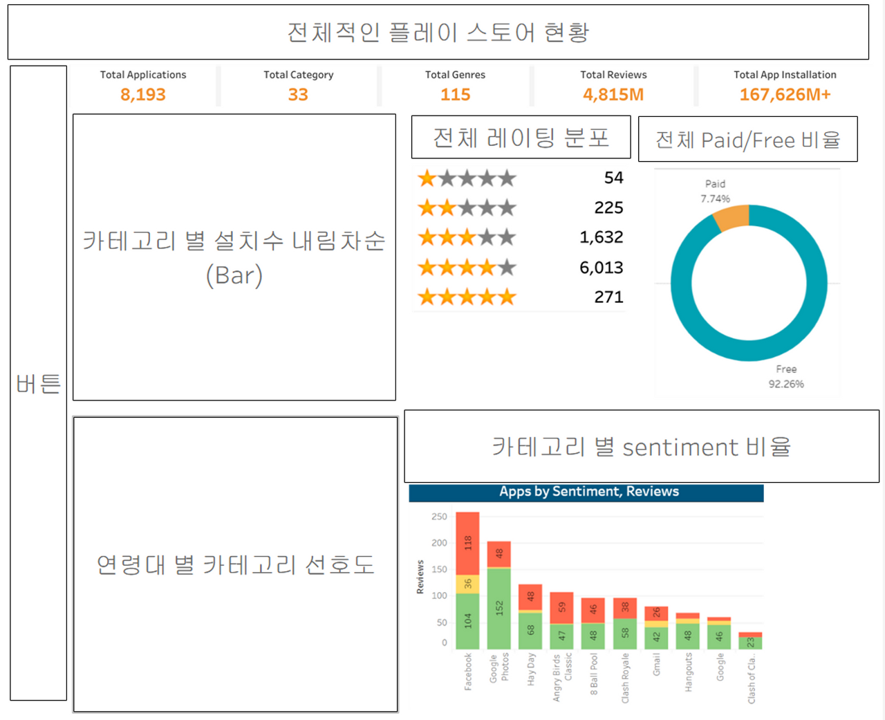 2) 카테고리에 따른 Google Playstore의 현황 대시보드
