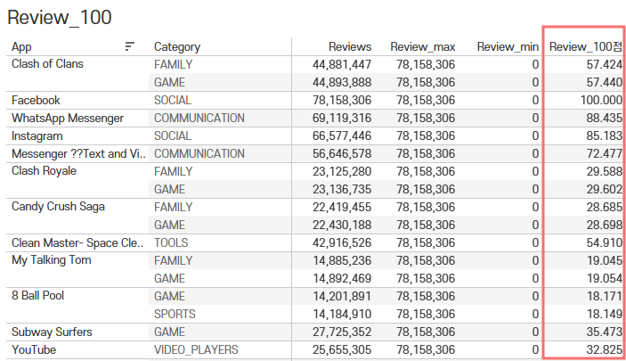 그래서 이러한 경우에도 하나의 앱이 100점 이상의 점수를 가지게 되었다.