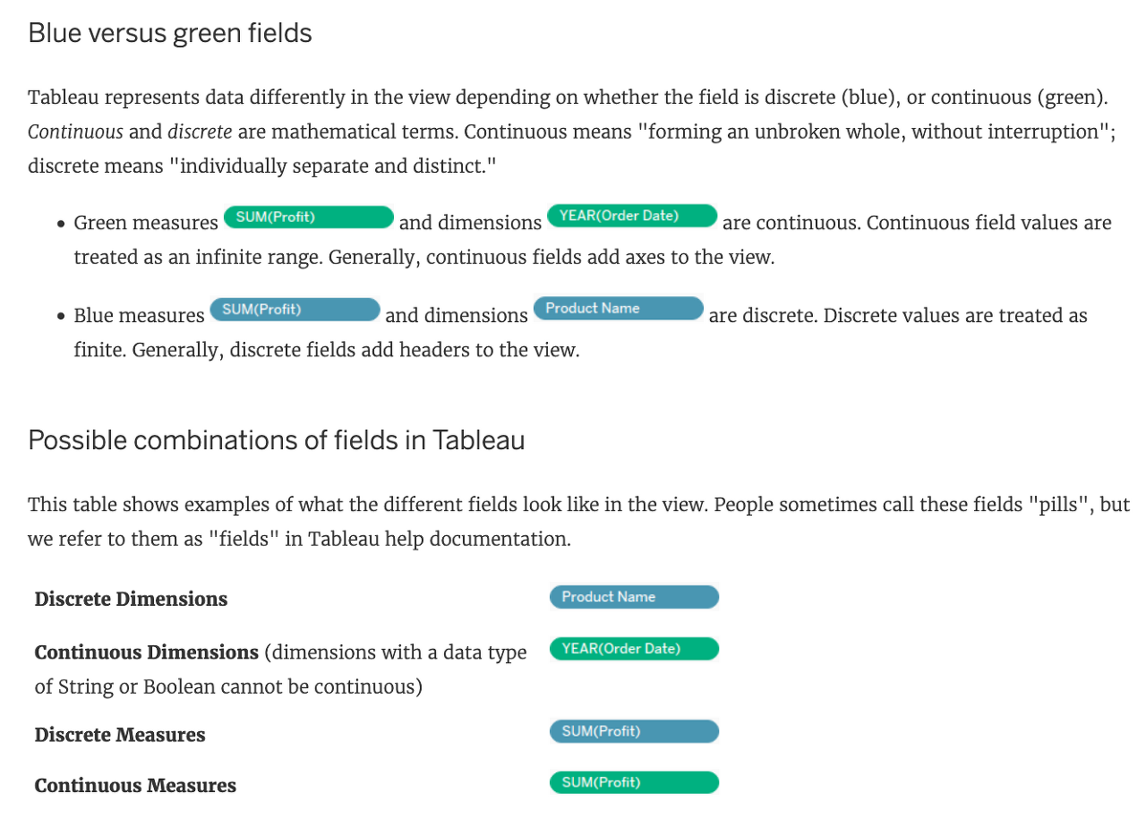 → When we drag a continuous field to the row/column shelf