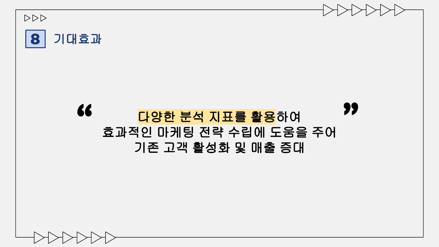다양한 분석 지표를 활용하여 효과적인 마케팅 전략 수립에 도움을 주어 기존 고객을 활성화시키고 매출을 증대할 수 있다는 점이다.
