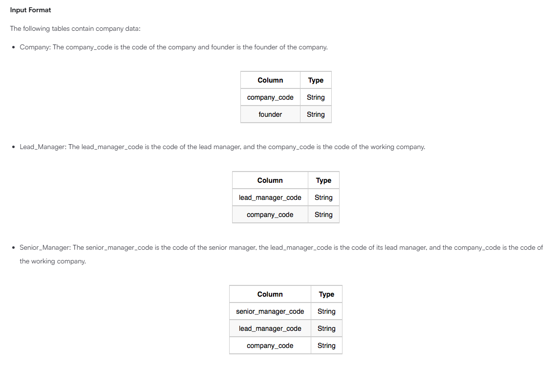 테이블들을 잘 살펴보면, Employee 테이블에 company_code부터 조회해야 하는 데이터를 다 가지고 있다.