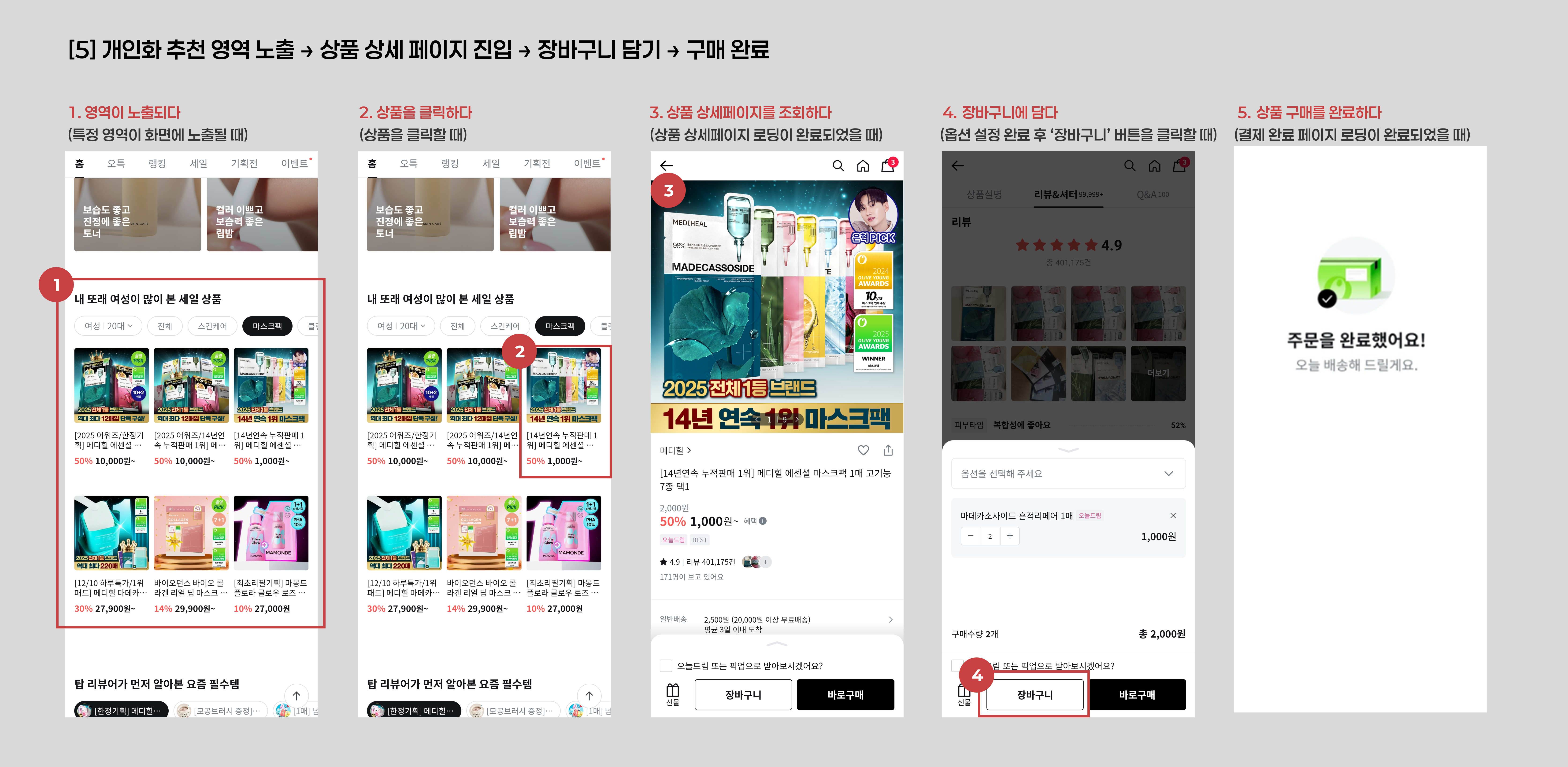 5) 올리브영 앱 메인 개인화 추천 영역에서 유입된 상품된 사용자는 장바구니에 담을 확률이 더 높다 (구매 전환율이 더 높다)