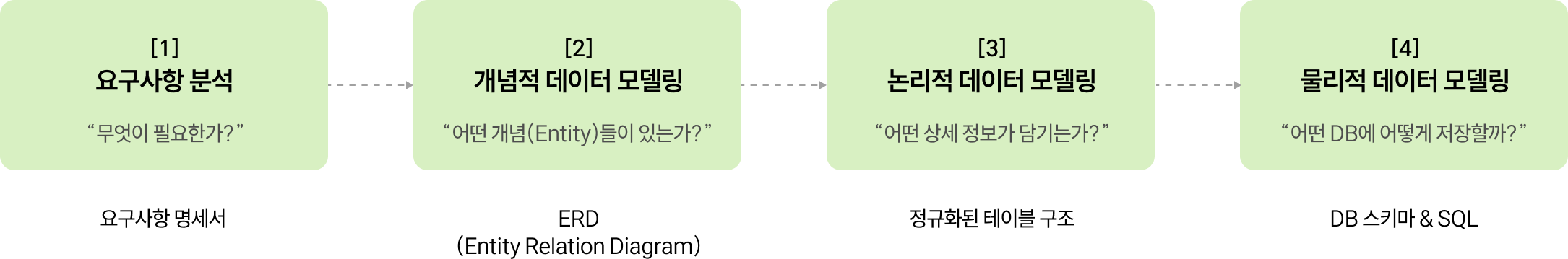 데이터 모델링은 총 4가지 단계로 진행된다.
