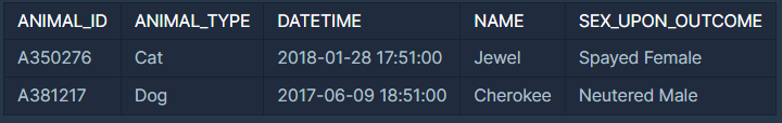 예를 들어, ANIMAL_INS 테이블과 ANIMAL_OUTS 테이블이 다음과 같다면