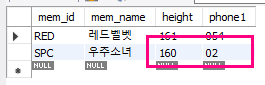 - PK가 설정된 열에서 null 값 조건을 생략하면 자동으로 NOT NULL로 인식